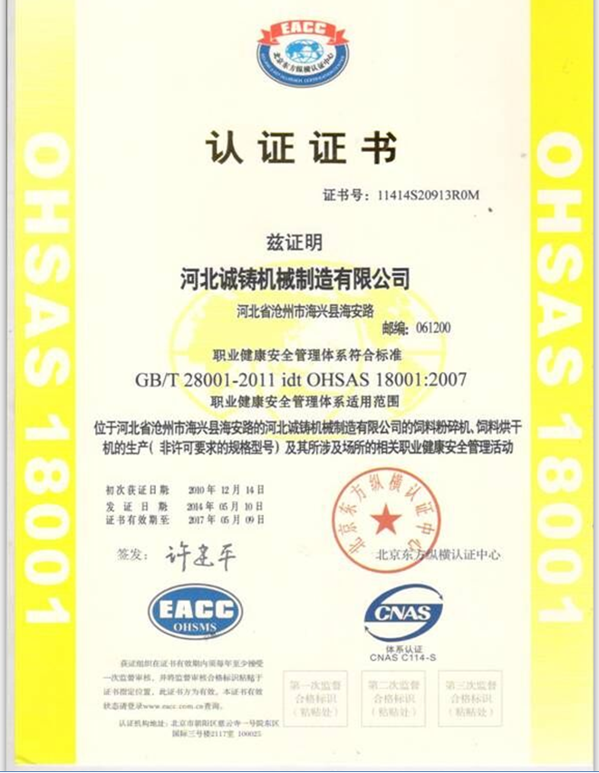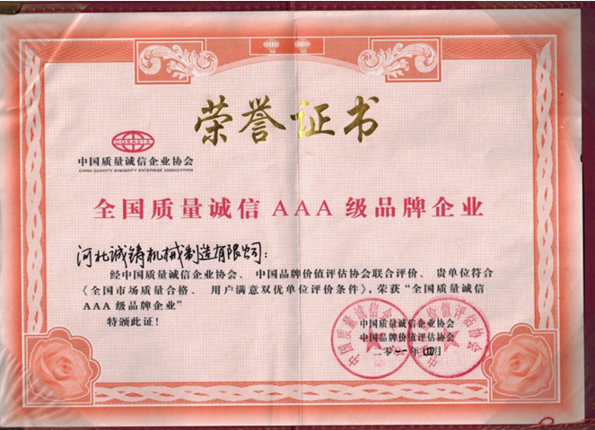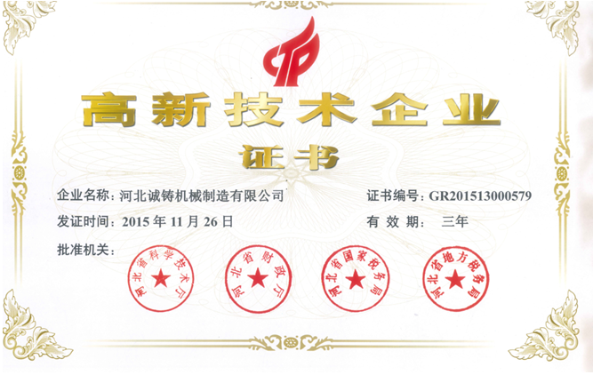 公司先后通過了ISO9001質(zhì)量管理體系認(rèn)證、ISO14001環(huán)境管理體系認(rèn)證、OHSAS18001職業(yè)健康安全管理體系認(rèn)證,并且獲得了十多項(xiàng)專利證書。同時(shí)2011年被評為《全國質(zhì)量誠信AAA級品牌企業(yè)》、2014年獲得《河北省科技型中小企業(yè)》稱號、2015年獲得《河北省高新技術(shù)企業(yè)》稱號、2017年獲得《河北省科技小巨人》稱號。