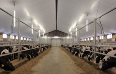 科學(xué)合理的光照是提高牧場經(jīng)濟(jì)效益最實(shí)惠的辦法,但前提是了解牛的光感,同時(shí)使用牛舍專用燈。荷蘭斯塔克牧場光照系統(tǒng)中的照明燈為牛舍專用燈,獨(dú)有日出日落控制系統(tǒng),可根據(jù)明暗自動(dòng)調(diào)節(jié)亮度,并可以實(shí)現(xiàn)16小時(shí)光照8小時(shí)黑暗的科學(xué)管理;藍(lán)白交替控制器,設(shè)定自動(dòng)藍(lán)光期,保證工作人員夜間照明并不打擾奶牛休息;采用垂直排列方式,避免平行排列產(chǎn)生的明暗交替問題,使光源分布更均勻;光源接近自然光,更好的促進(jìn)維生素D的合成。內(nèi)部加裝散熱鋁片,可以高效散熱,避免夏季因照明產(chǎn)生的熱應(yīng)激問題;光衰期大于10年(普通燈2年);IP67級(jí)防水防塵,可以直接用水槍沖洗;同時(shí)節(jié)能,針對(duì)普通LED燈3200流明的斯塔克燈只有36瓦,節(jié)能50%左右,如果按照有效的紅橙光來計(jì)算,節(jié)能效率更高。實(shí)現(xiàn)這一切,每頭牛每天的投入只有5分錢。